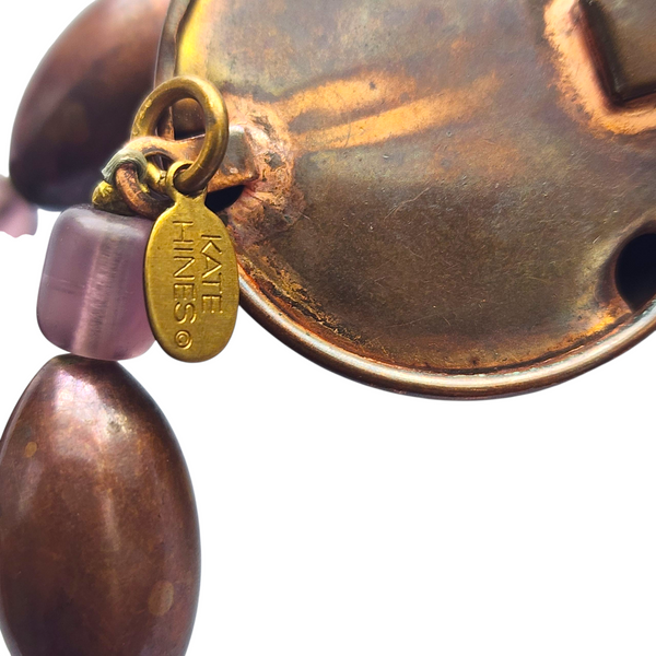 This stunning Kate Hine copper necklace with purple bead spacers, features a chunky, handcrafted design that beautifully combines bold style with artisan craftsmanship. The 36-inch length allows for versatile wear — perfect for layering or wearing as a standout solo piece.